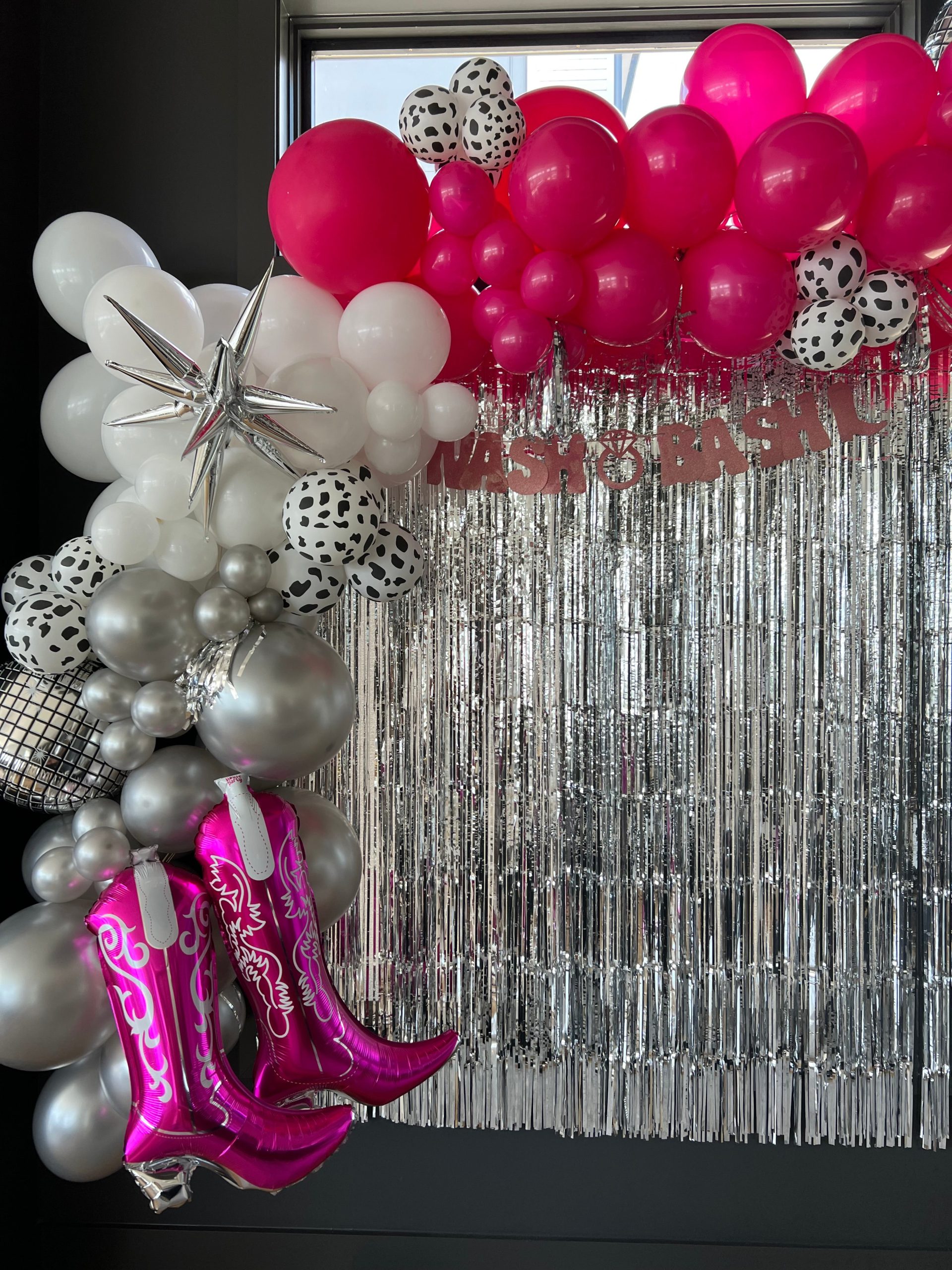 - Hanging tinsel backdrop or accent tinsel included into balloon garlands and decor throughout the space