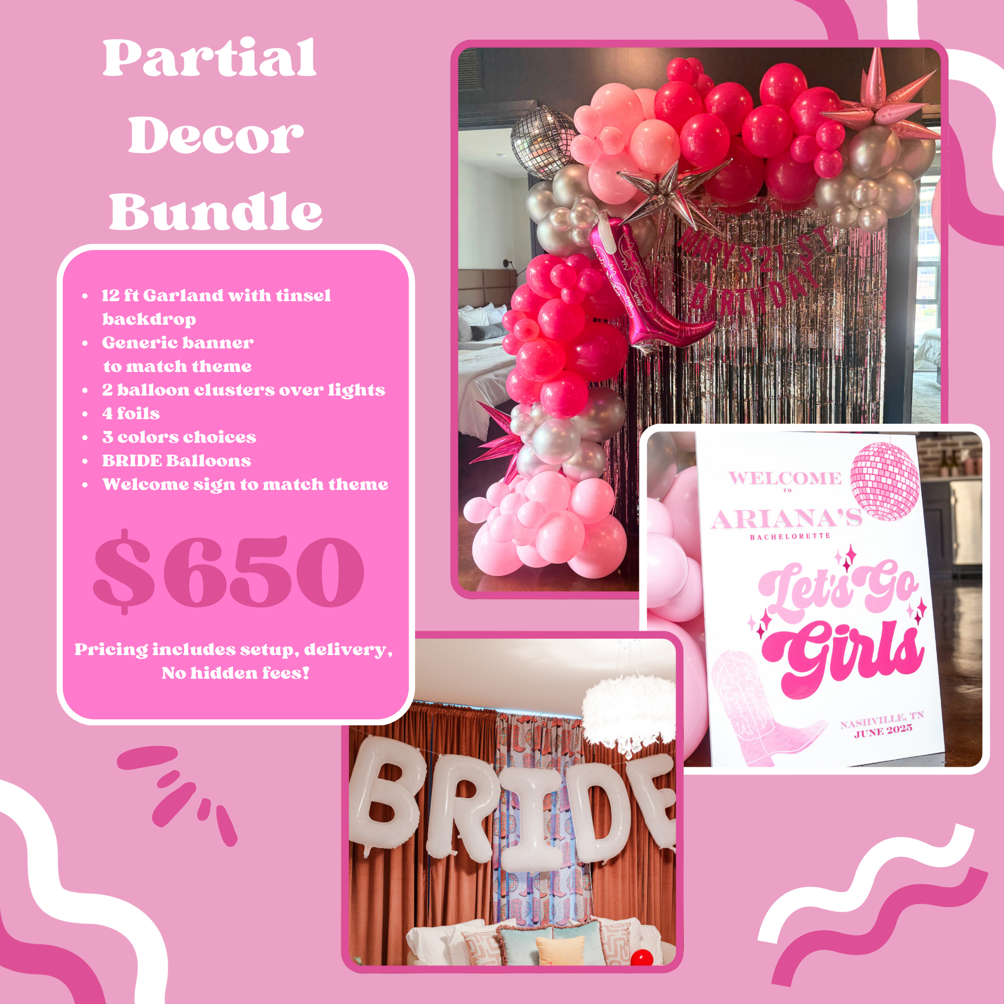 - 10 feet of custom balloon garlands styled to match your selected theme, thoughtfully placed throughout the Airbnb