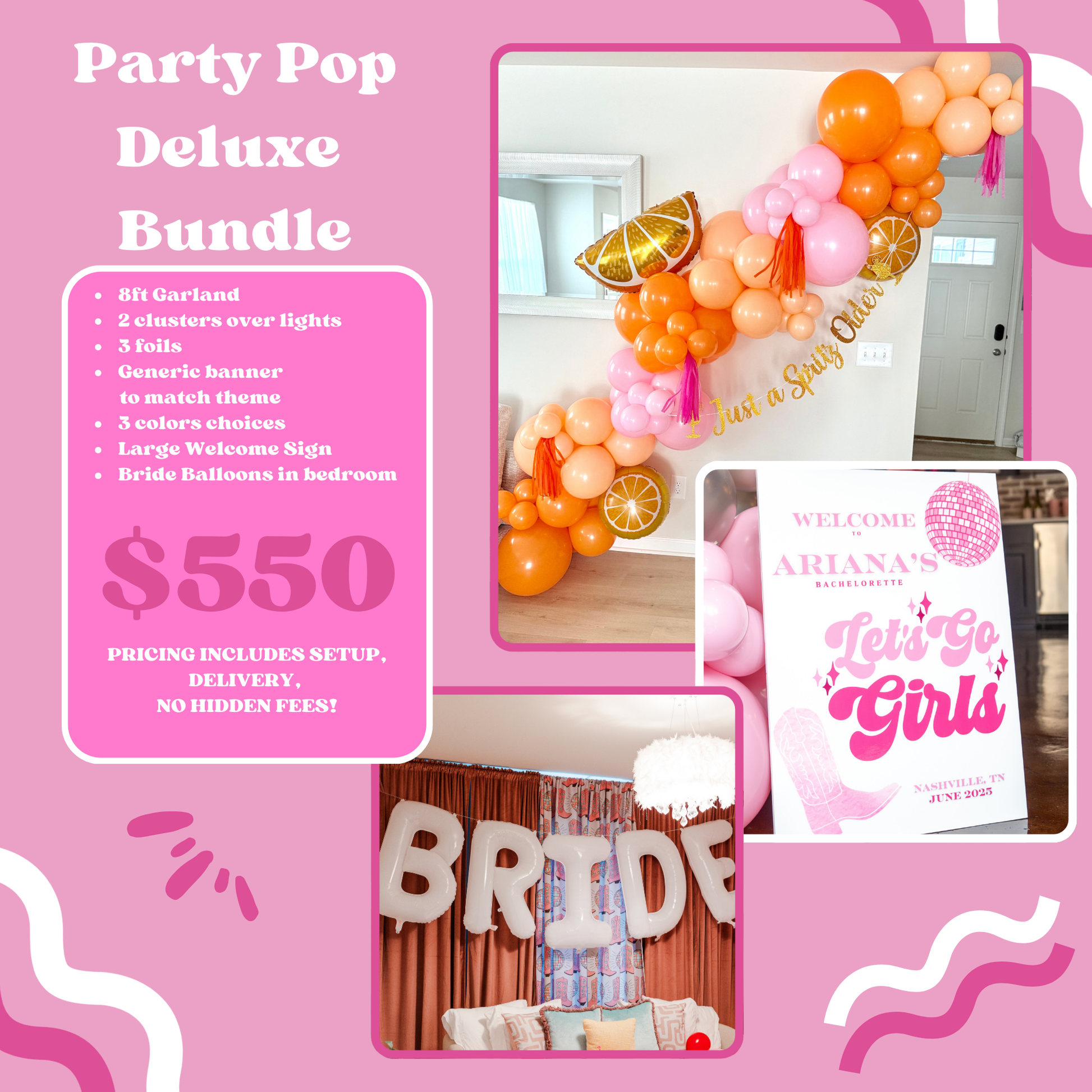 Whether you're toasting the bride or turning up for your birthday, this party bundle brings the pop to your party! You’ll get a 10ft balloon garland in your fave 3 colors, 3 themed foil balloons to match the vibe, and a fun generic banner to pull it all together. It’s the perfect mix of cute, custom, and totally camera-ready. Let us handle the decor while you handle the champagne 🍾